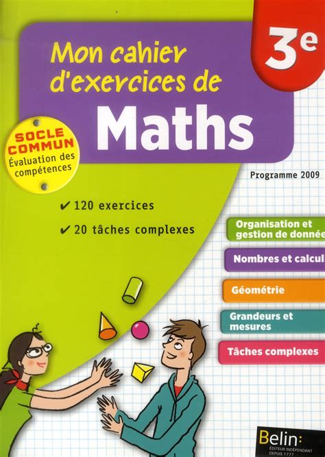 Amazon Fr Maths 3e Exercices Resolus Dhondt Dorothee Larrouturou Florence Larrouturou Pierre Schavsinski Matthieu Livres from images-na.ssl-images-amazon.com Exercices sur les principaux chapitres du programme de maths en troisième sous forme de fichier pdf comme les nombres rationnels et l'arithmétique, le théorème de. Maths ème exercices de mathématiques de ème au format pdf avec corrigés. Plus de 46 000 fiches d'exercices de maths traitant l'addition, la soustraction, la division, la multiplication, les opérations mixtes, le temps, la probabilté. Exercice de math 3ème brevet blanc. Sélectionnez la fiche de maths de 3ème que vous voulez consulter. Cette partie est en construction. Vous pouvez suivre votre progression dans chacun des chapitres de géométrie et d'algèbre à votre rythme grâce à l'enregistrement des scores. Un problème sur un devoir de maths ?